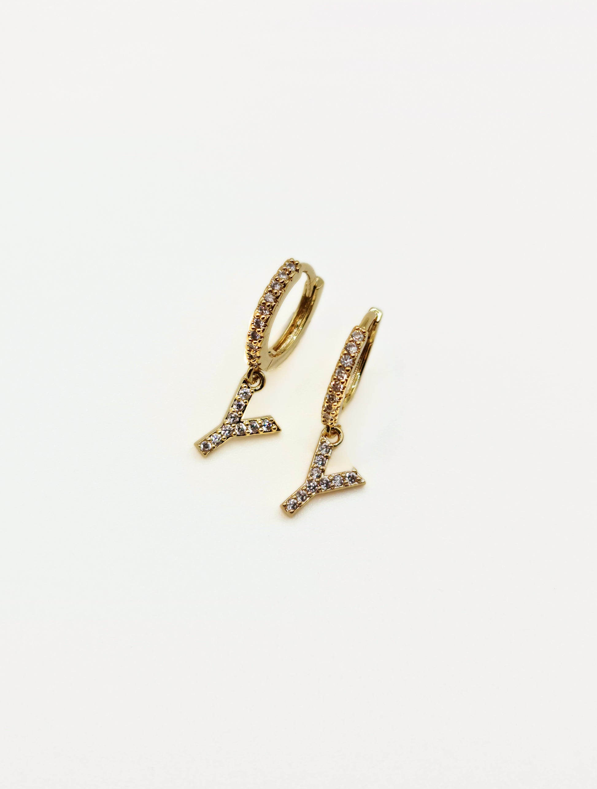 The Lana 'Y' Initial 18k Gold Plated Stainless Steel Crystal Drop Hoop Earring.