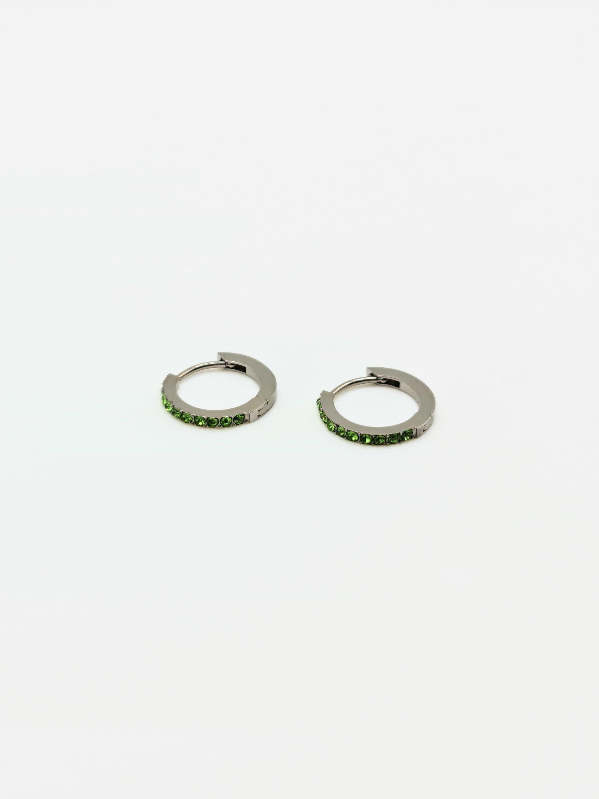 The Maija 'August' Peridot Birthstone Silver Finish Tarnish Free Crystal Huggie Hoop Earrings.