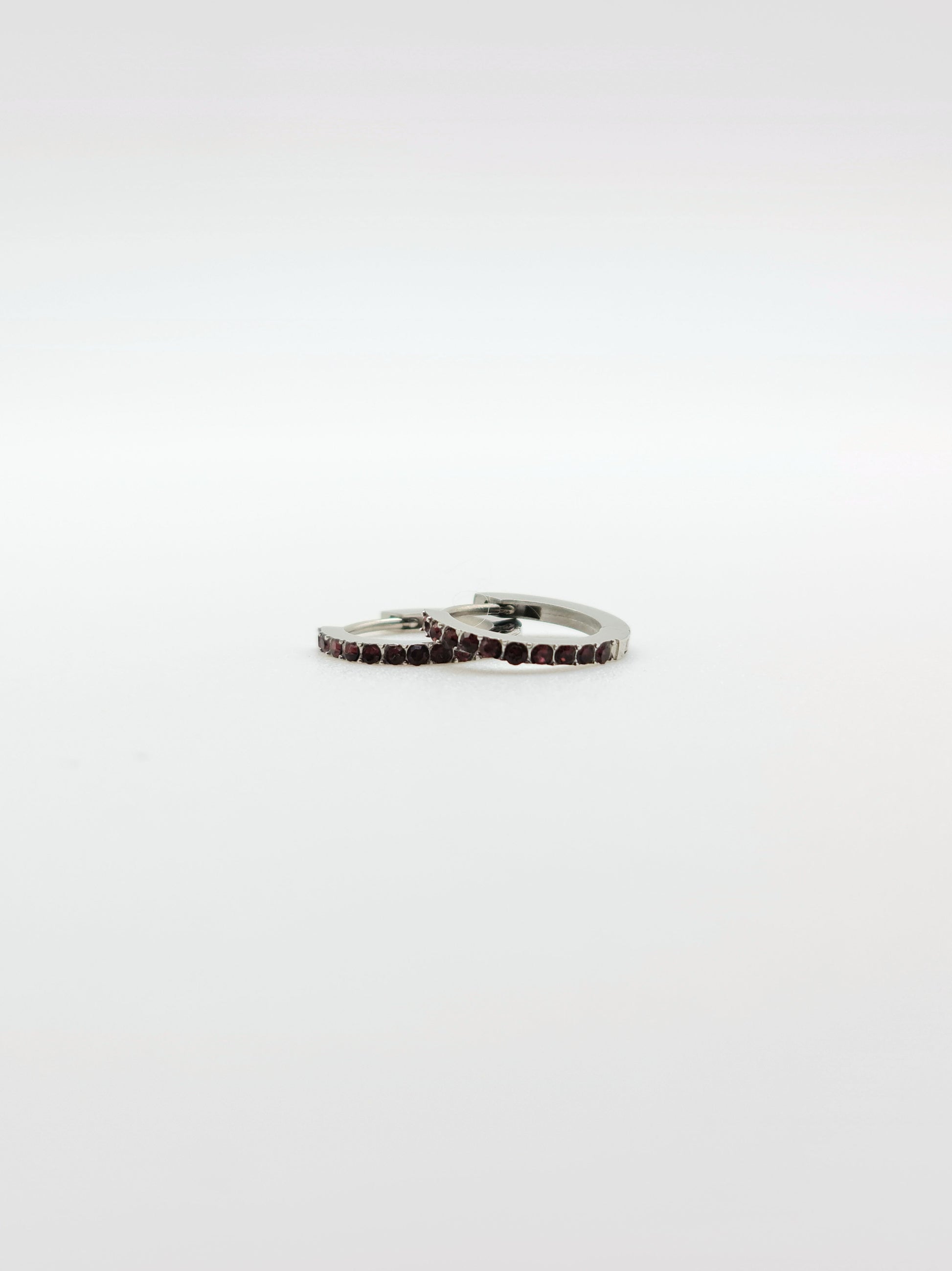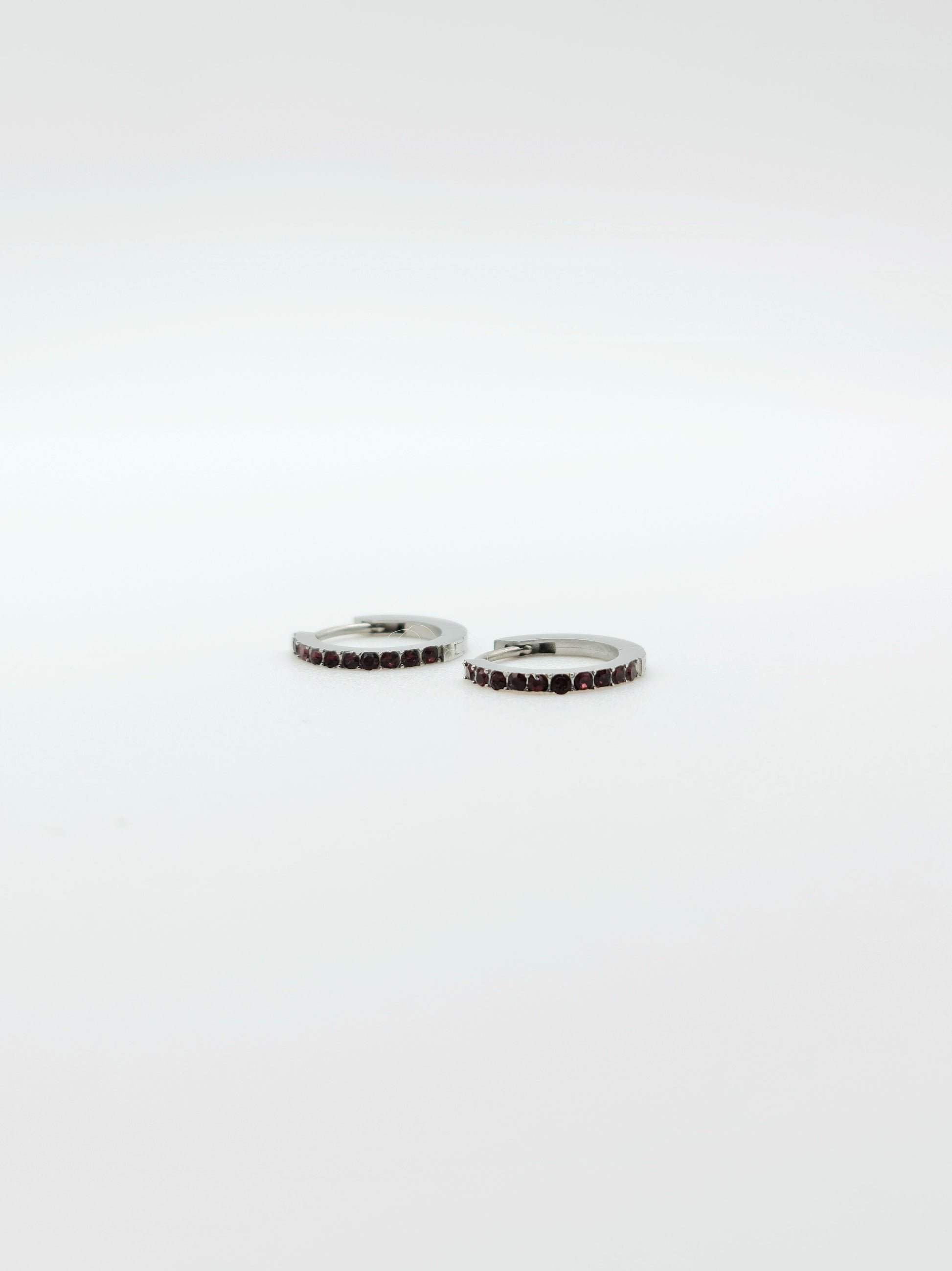 The Maija 'July' Ruby Birthstone Silver Finish Tarnish Free Crystal Huggie Hoop Earrings.