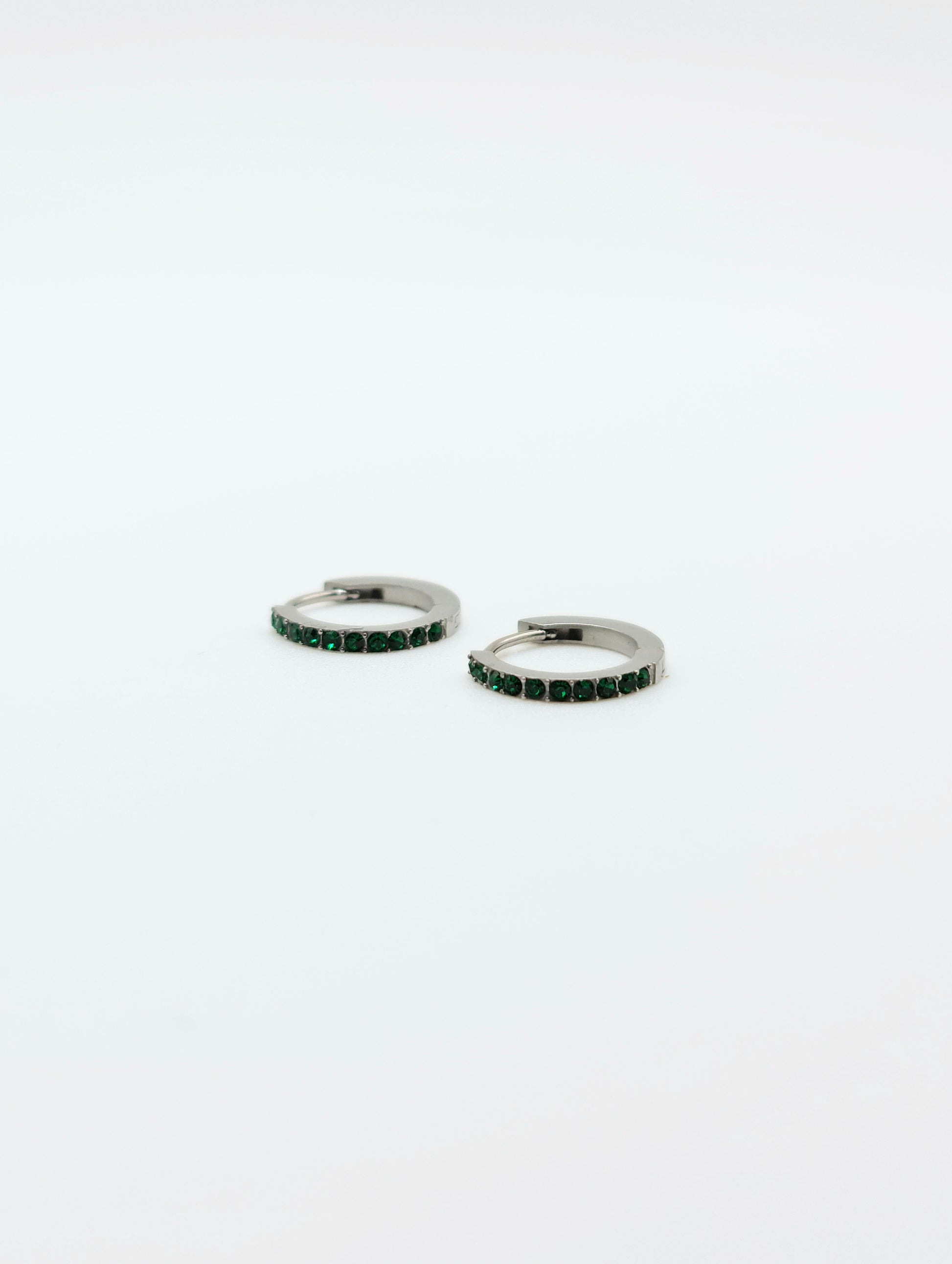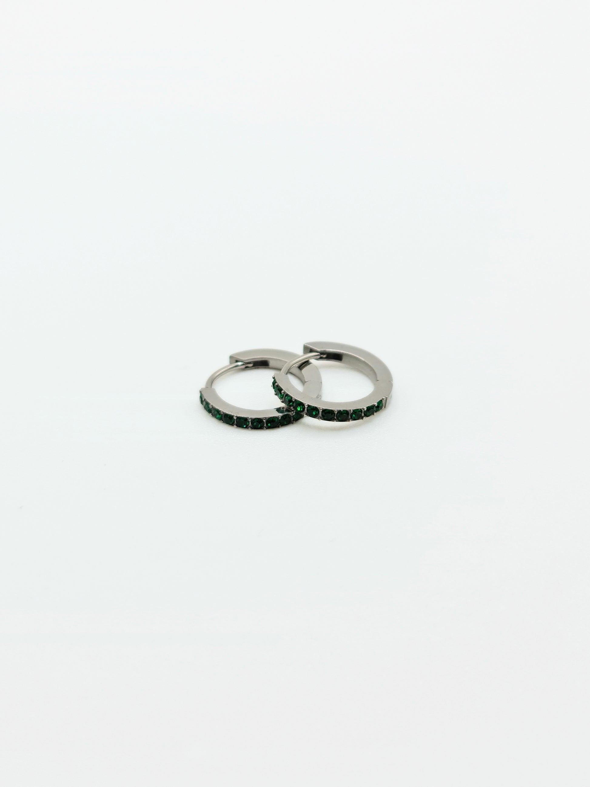 The Maija 'May' Emerald Birthstone Silver Finish Tarnish Free Crystal Huggie Hoop Earrings.