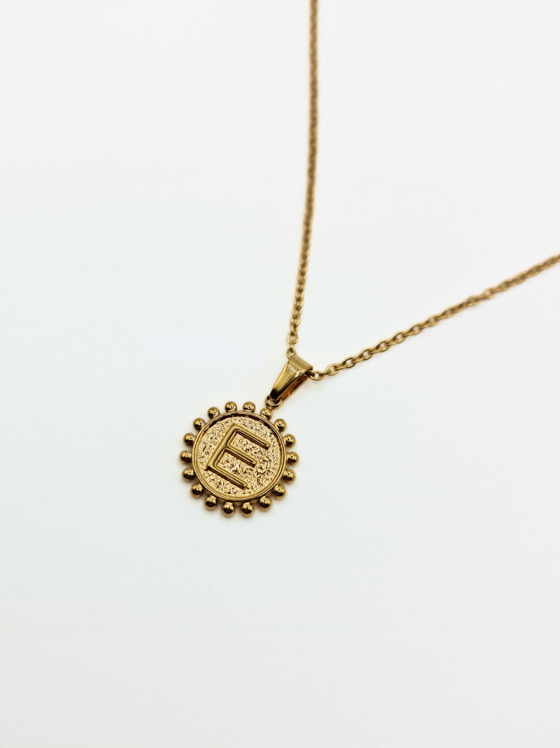 Make it personal with the ‘E’ Initial Pendant Necklace from the Talisman Collection—a timeless piece that blends modern elegance with meaningful detail. Featuring a bold initial framed by a delicate ball-trim border, this necklace is designed to celebrate individuality and style.